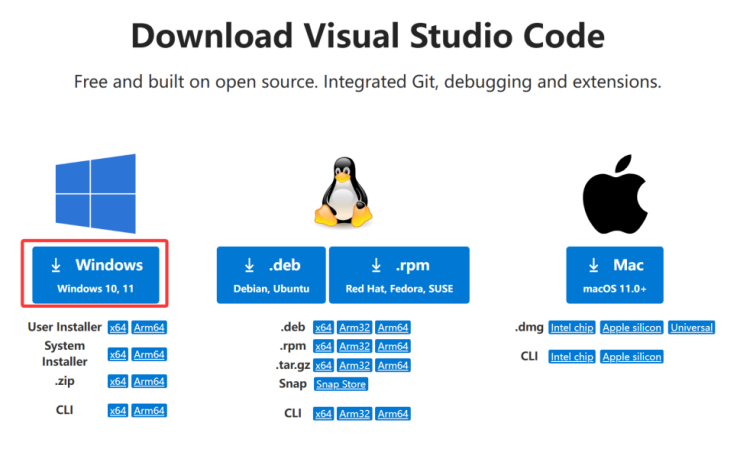 - VScode官网下载页:https://code.visualstudio.com/Download