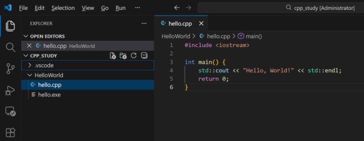 4.编写第一个c++的helloworld程序hello.cpp