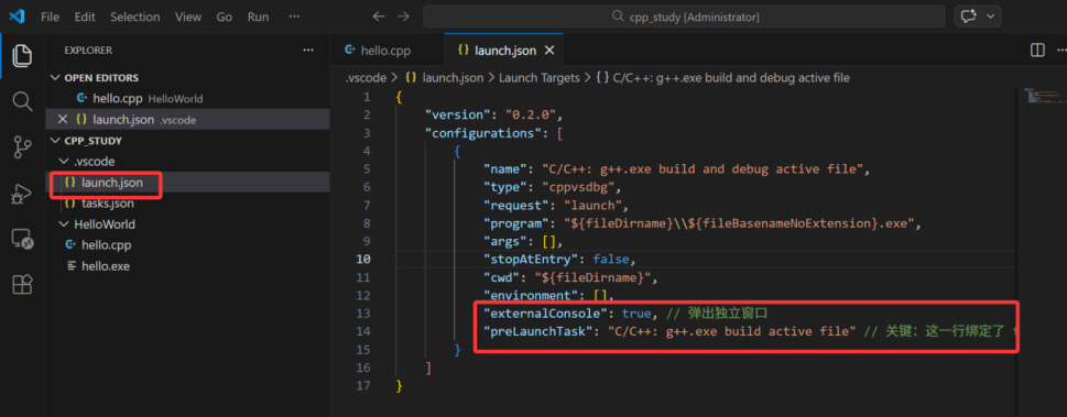 6.创建launch.json 设置 “externalConsole”: true, // 弹出独立窗口